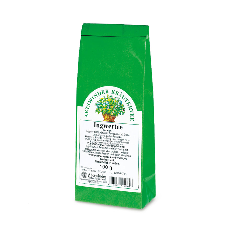 Ingwer 50%, Grüner Tee (Sencha (30%), Lemongras, Süßholzwurzel.