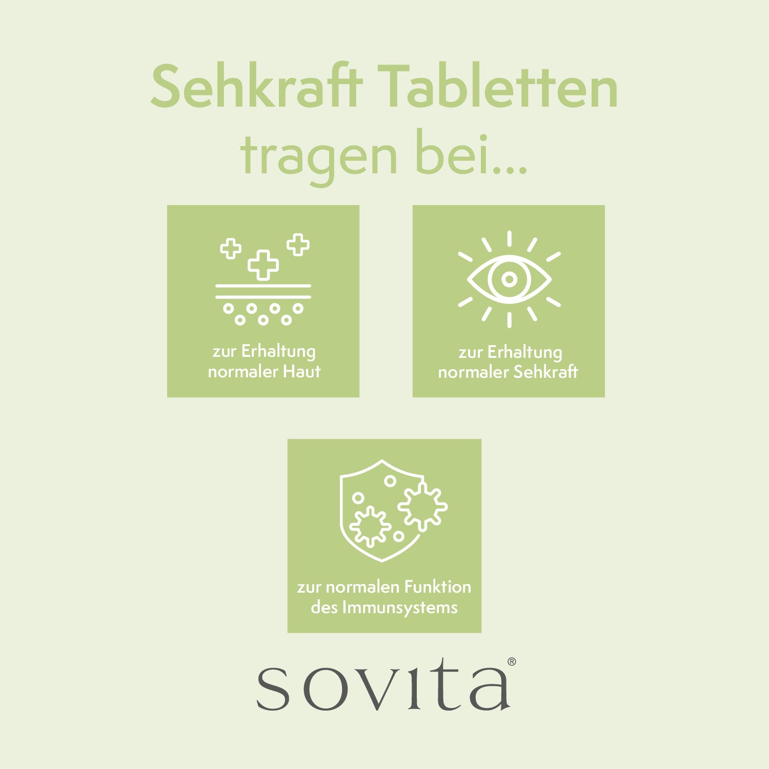Die sovita Sehkraft Tabletten wurden speziell für Menschen entwickelt, die ihre Augen bewusst in den Mittelpunkt ihrer Nährstoffversorgung stellen möchten. Die Rezeptur enthält 1500 µg RE Vitamin A (5000 I.E.) pro Tablette und deckt damit 188 % des täglichen Referenzwertes ab.
