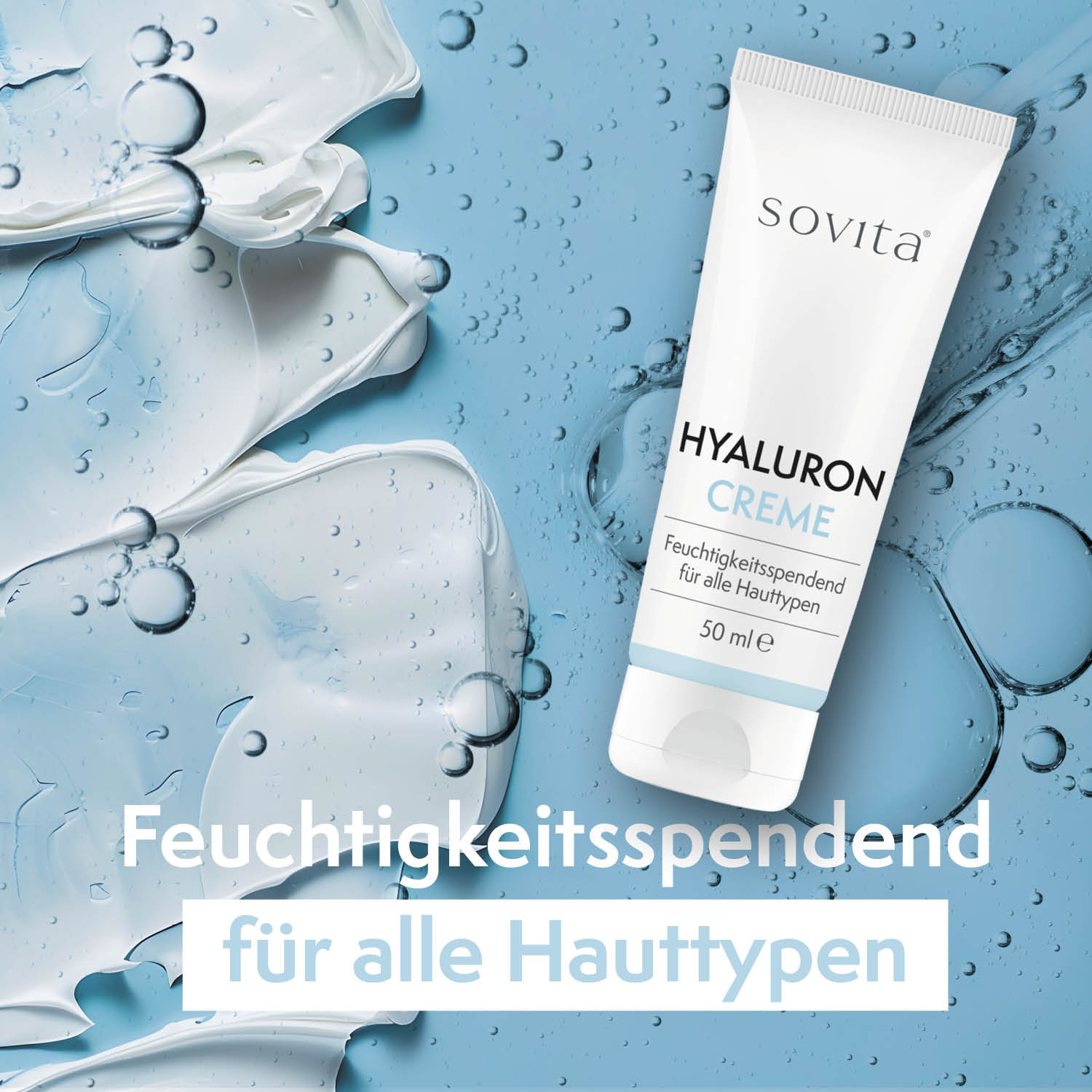 sovita Hyaluron Creme ist eine straffende Tages- und Nachtcreme mit der feuchtigkeitsbindenden Tiefenwirkung der Hyaluronsäure. Die intensive Formel mit pflanzlichen Konjac Mannanen und Milchproteinen mildert sichtbar Fältchen, sorgt für jugendliche Spannkraft sowie Vitalität und ist für jeden Hauttyp geeignet. Kostbare Pflegefaktoren wie Mangokern- und Sheabutter schützen und beruhigen die Haut zusätzlich. Müde und kraftlose Haut erscheint in einem strahlend frischen Teint.