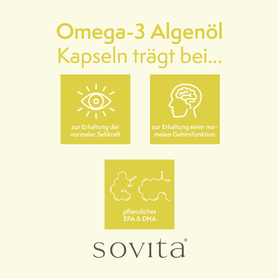 DHA- und EPA-reiches Öl aus der Mikroalge Schizochytrium sp. 500 mg (davon 150 mg DHA und 50 mg EPA).
