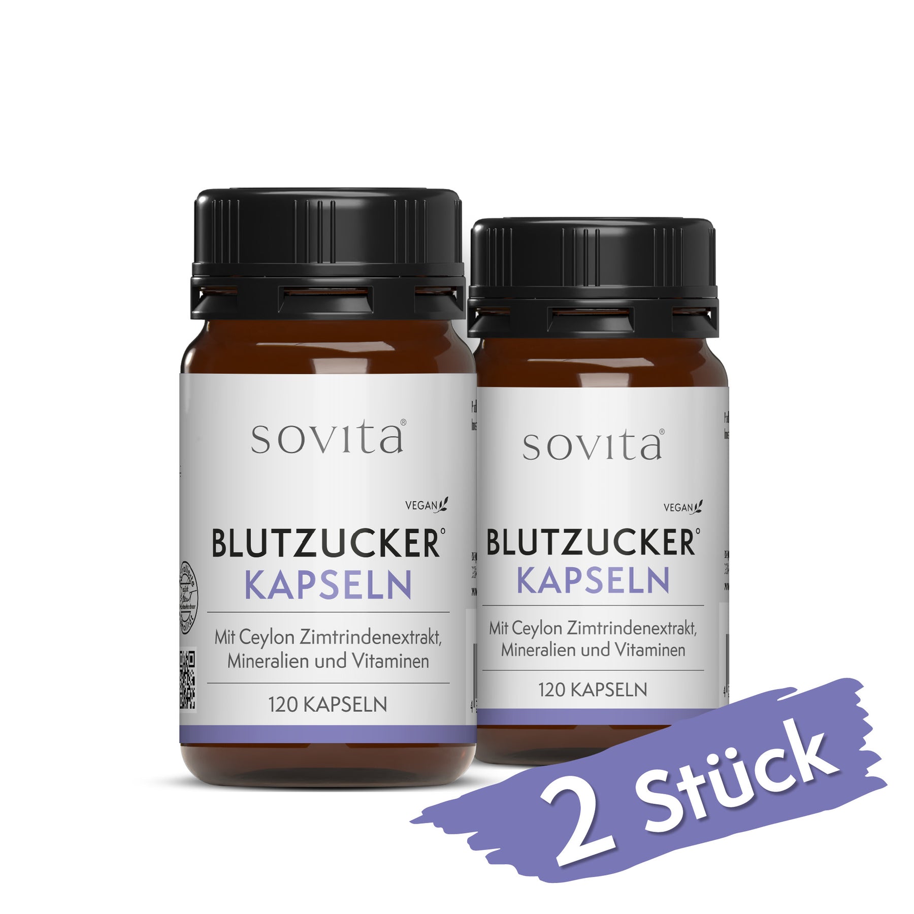 Die sovita Blutzucker Kapseln enthalten eine gezielte Kombination aus hochkonzentriertem Ceylon-Zimtrindenextrakt (10:1), den wichtigen Spurenelementen Zink und Chrom sowie den Vitaminen B1, B6 und B12. Diese Inhaltsstoffe unterstützen zahlreiche Stoffwechselfunktionen und tragen gezielt zur Versorgung mit Mikronährstoffen bei – besonders bei unausgewogener Ernährung oder in Phasen erhöhter Belastung.