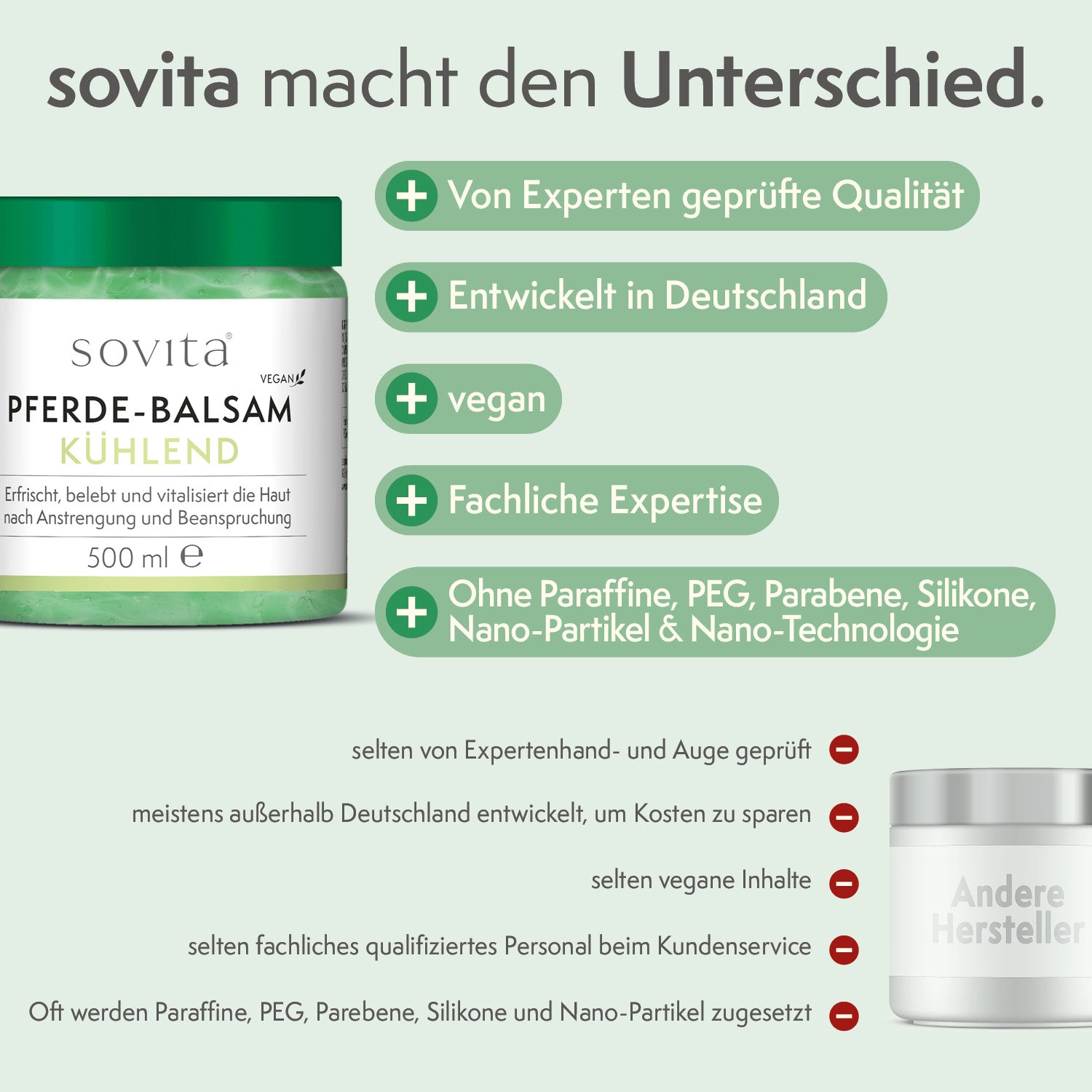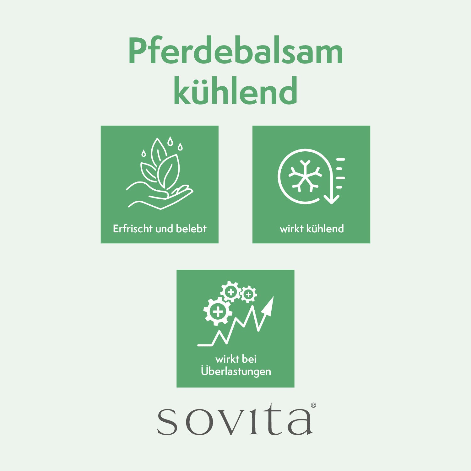Pferdebalsam enthält viele Kräuter aus der Natur, wie Eukalyptus, Arnika und Rosskastanie, sowie Kampfer und Menthol und sorgt für Entspannung gleich nach dem Auftragen.