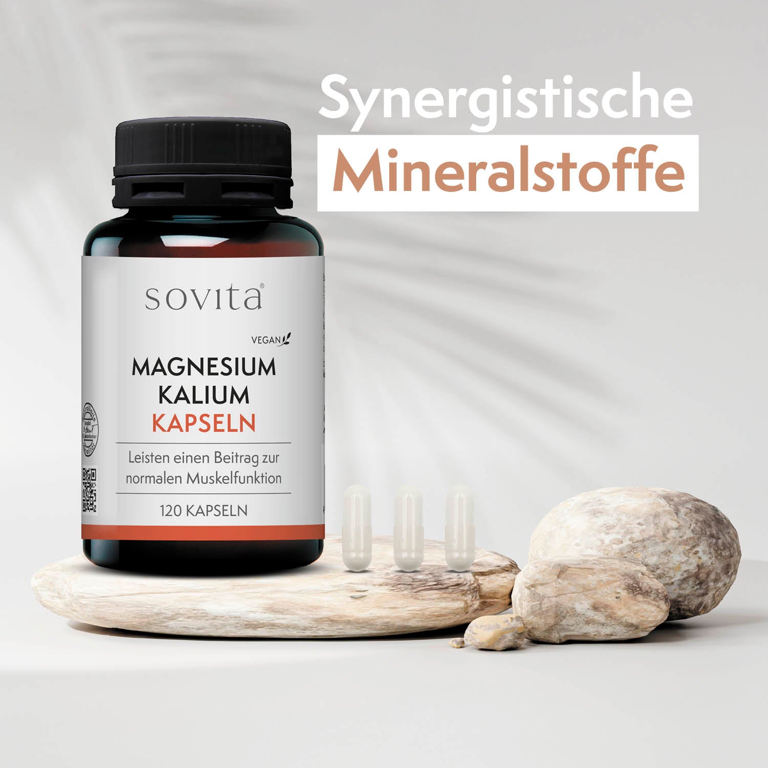 Eine ausgewogene Versorgung mit Magnesium und Kalium ist essenziell für eine normale Muskelfunktion und ein gut funktionierendes Nervensystem. sovita Magnesium Kalium Kapseln kombinieren diese beiden Mineralstoffe in optimal abgestimmter Menge.