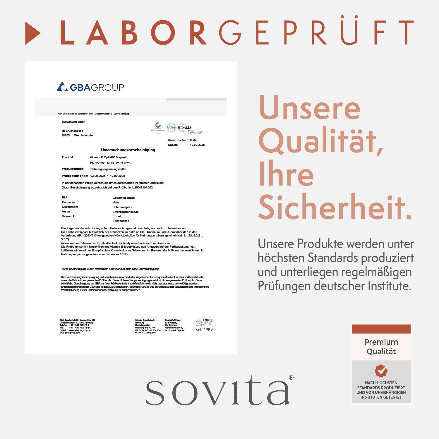✔ Hochdosiert: 400 I.E. (268,4 mg α-TE) Vitamin E pro Kapsel ✔ Vitamin E trägt dazu bei, die Zellen vor oxidativem Stress zu schützen ✔ Hergestellt unter kontrollierten Bedingungen in Deutschland ✔ Für Personen geeignet, die gezielt ihre antioxidative Versorgung unterstützen möchten