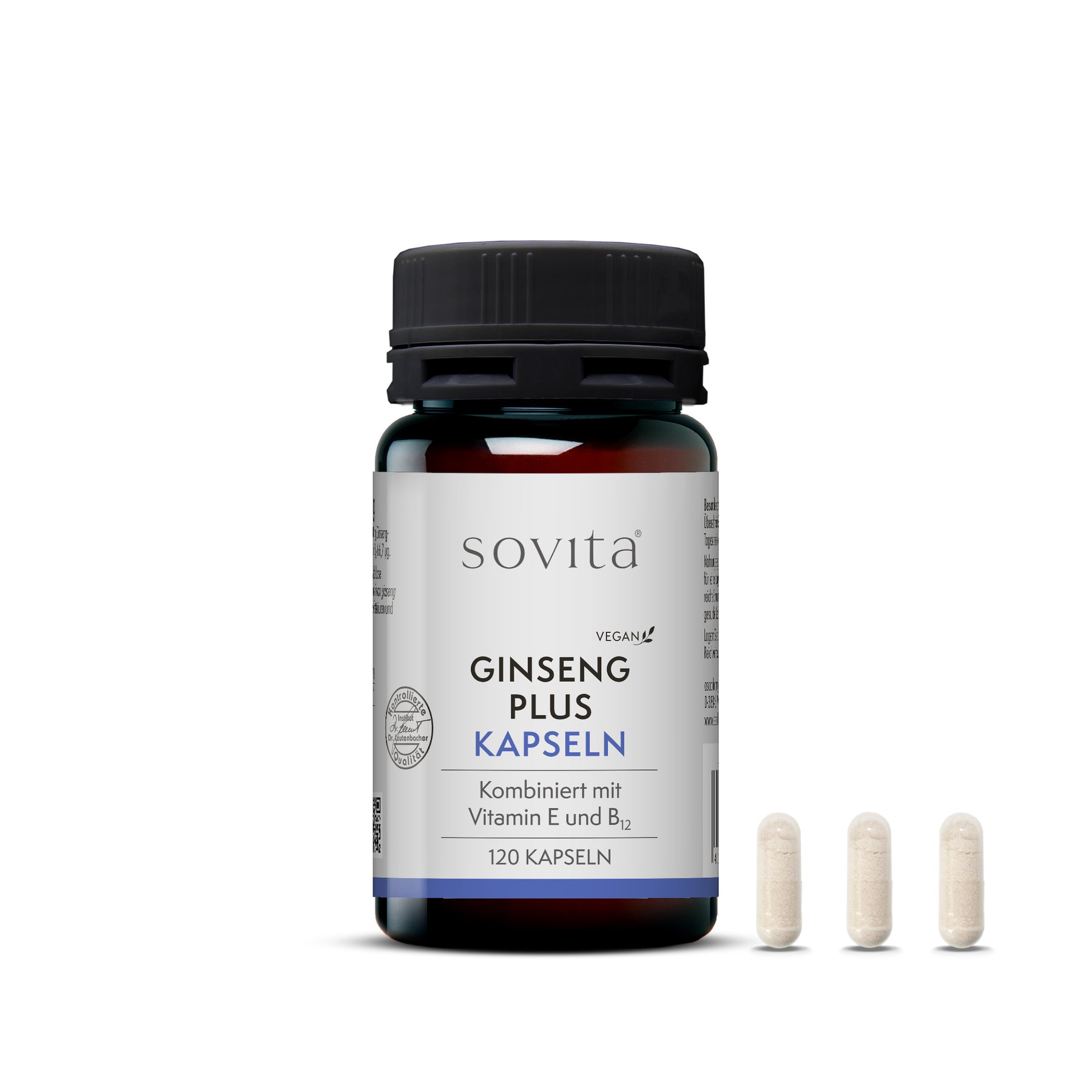 Die sovita Ginseng Plus Kapseln enthalten einen wertvollen Ginsengextrakt kombiniert mit natürlichem Vitamin E und Vitamin B12. Vitamin E schützt die Zellen vor oxidativem Stress, während Vitamin B12 zur Verringerung von Müdigkeit und Ermüdung beiträgt und die normale Funktion des Nervensystems unterstützt.