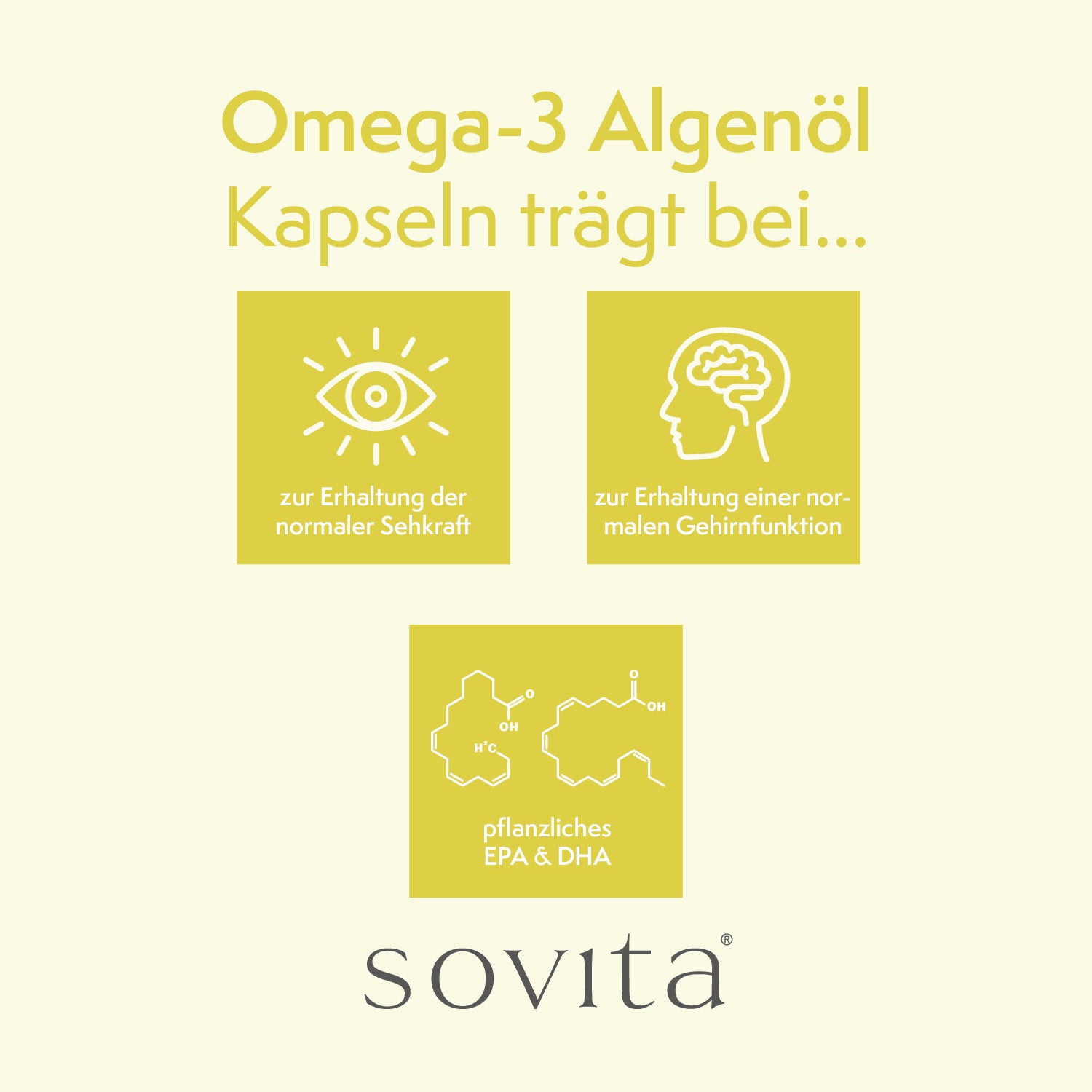DHA- und EPA-reiches Öl aus der Mikroalge Schizochytrium sp. 500 mg (davon 150 mg DHA und 50 mg EPA).