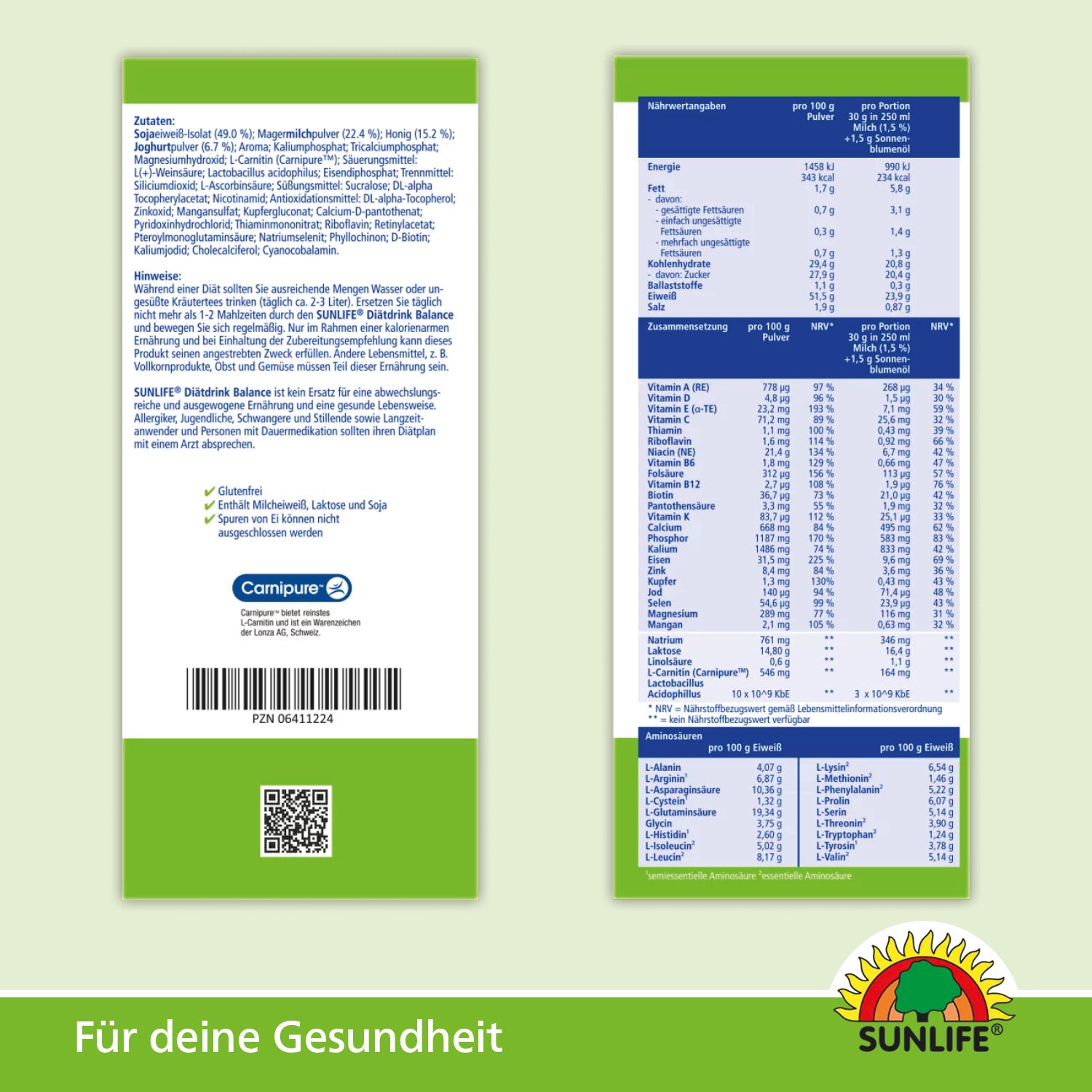 Die hochwertige Zusammensetzung des SUNLIFE® Diätdrink Balance gewährleistet eine Versorgung mit wichtigen Nährstoffen in ausreichender Menge. Das eingesetzte Eiweiß aus den drei Komponenten Milch, Joghurt und Soja trägt zur Erhaltung der Muskelmasse bei. Der Inhaltsstoff CARNIPURE™ enthält 100% reines L-Carnitin und steht für höchste L-Carnitin-Qualität. Magnesium, Vitamin B2, B6 und B12 tragen zu einem normalen Energiestoffwechsel bei. Calcium trägt zur normalen Funktion von Verdauungsenzymen bei. Zink trägt zu einem normalen Kohlenhydrat- und Fettsäurestoffwechsel bei.