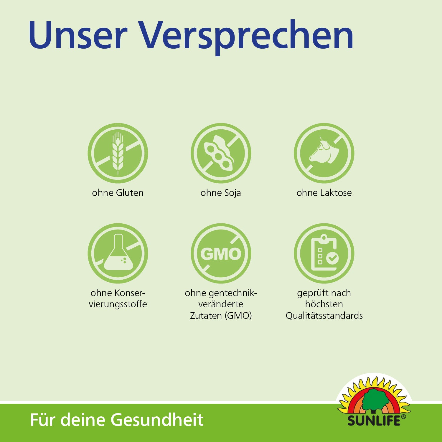 Die zusätzlichen 100 µg Biotin fördern gesunde Haut, Haare und Nägel, während 5 mg Zink die Hautregeneration unterstützen und für ein strahlendes Erscheinungsbild sorgen.