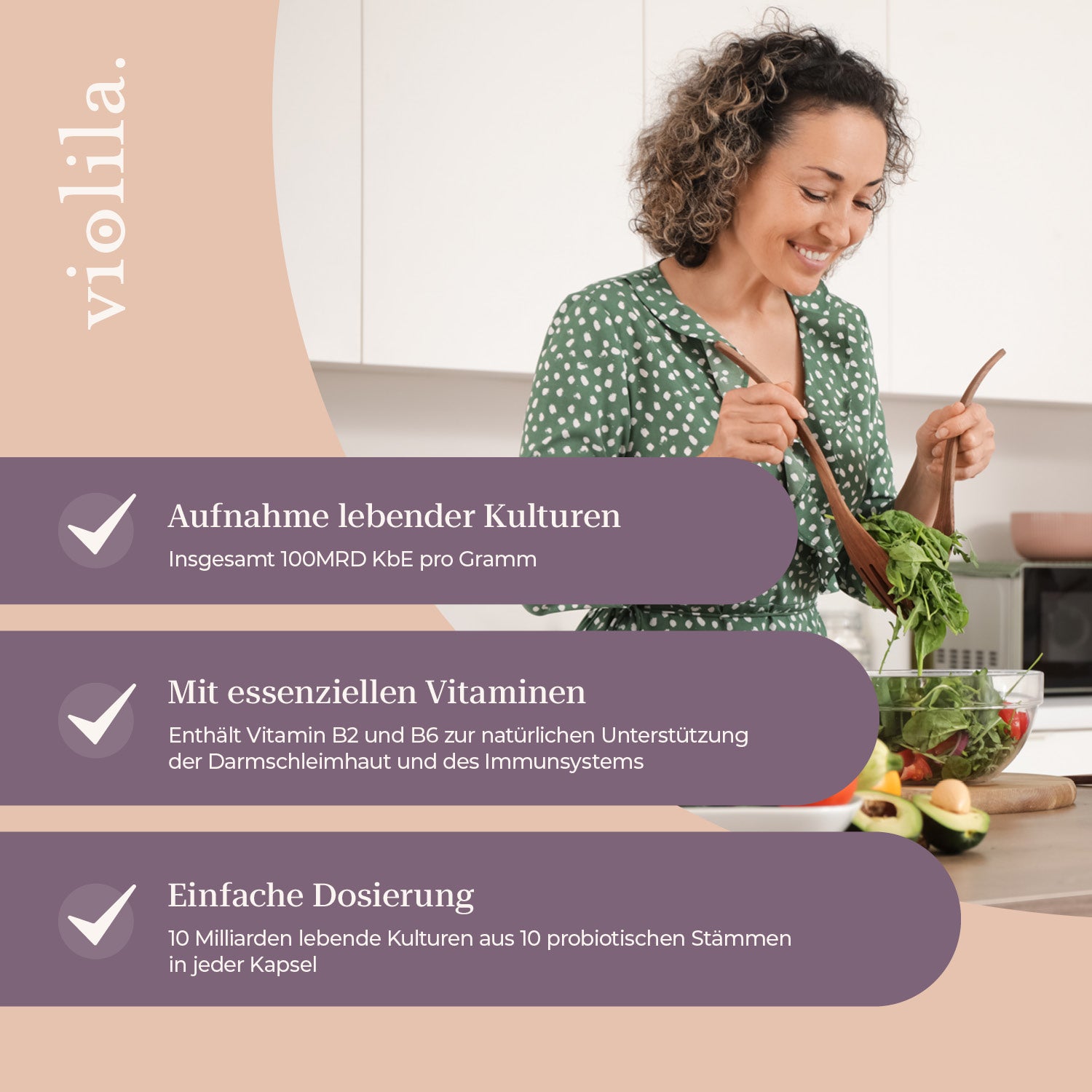 violila Flora+ Kapseln – Mit 23 Bakterienstämmen sowie Vitamin B2 & B6 für Schleimhäute und Immunsystem